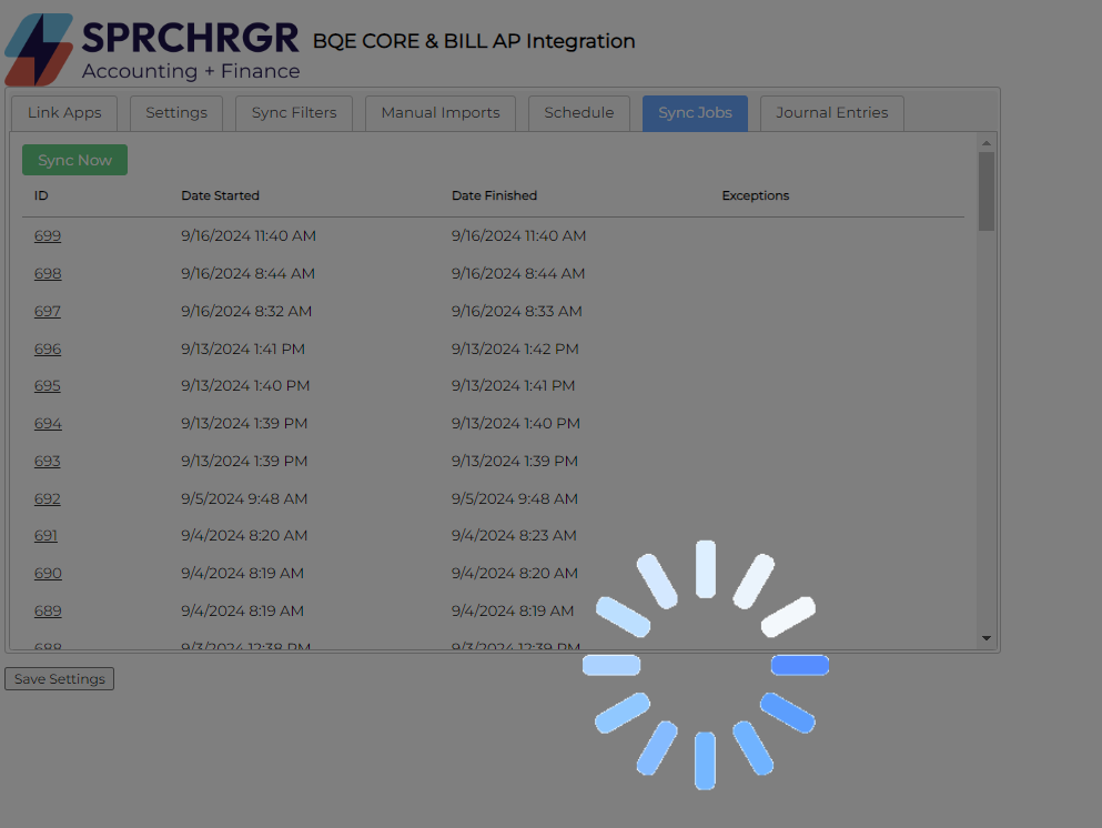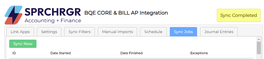 Once the sync is complete, a new log entry is recorded with an ID, the date and time when the sync started, along with the date and time when it finished. You'll know it's complete when the yellow 'Sync Completed' indicator returns to the top right portion of the screen.