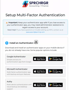 - Users setting up MFA for the first time will be redirected to this page, which instructs the user on how to set up an Authenticator app.
