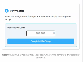 - Once you’ve set up the app and scanned the MFA QR code, you’ll have to verify the connection: